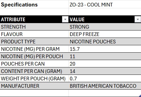 COOL MINT COOL MINT is crafted for users seeking a clean, smoke-free nicotine experience with a balanced 冰薄荷 profile. The slim-format pouches sit comfortably under the lip, delivering a consistent and satisfying release aligned with its 11 strength. Ideal for discreet daily use, this product offers predictable nicotine delivery, smooth flavour release, and a mess-free alternative to traditional tobacco products.