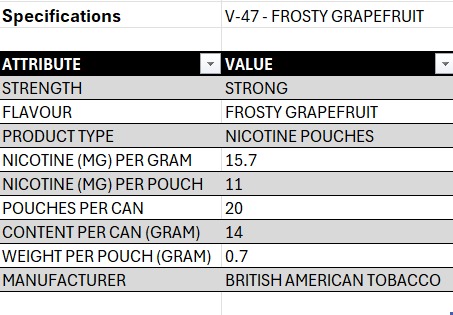 • Nicotine per pouch: 14.0mg
